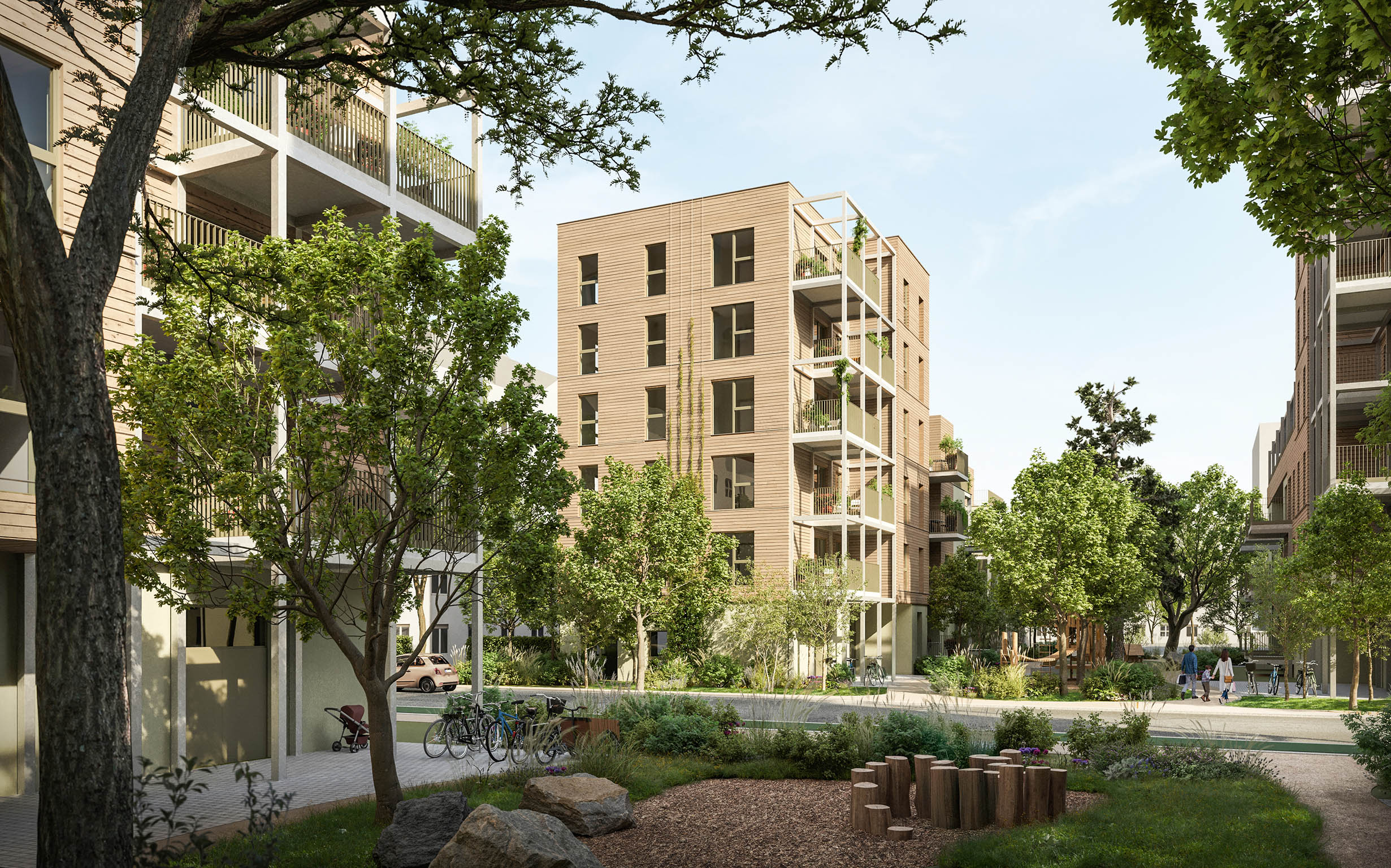 In der Baumstadt Floridsdorf entsteht eine ruhige und sichere Umgebung, in der Bewohner:innen aller Generationen gerne spazieren gehen, Radfahren oder mit ihren Kindern spielen können.