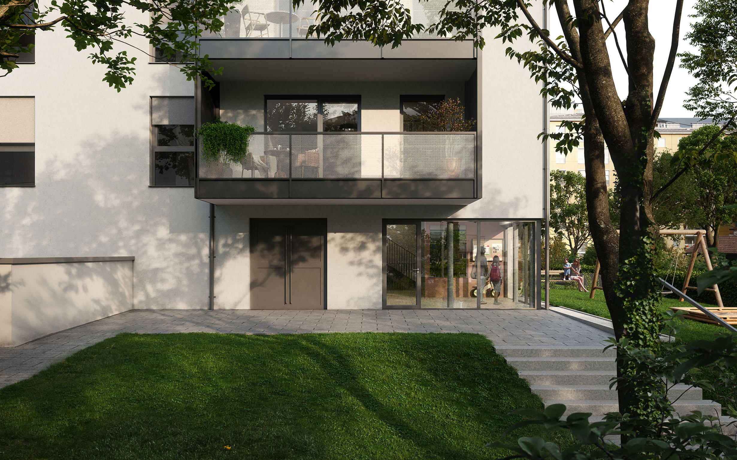 Es entstehen insgesamt 21 attraktive und leistbare Wohnungen mit persönlicher Freifläche wie Terrasse, eigenem Garten bzw. Balkon oder Loggia. 17 PKW-Stellplätze in der Tiefgarage, 4 PKW-Stellplätze im Freien.